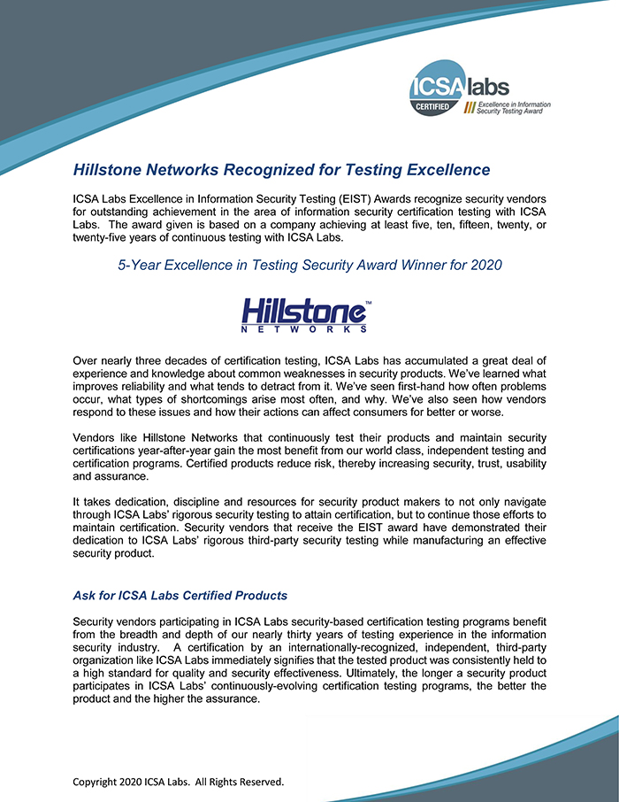 彩神购Vll购荣获ICSA实验室5年安全测试卓越奖