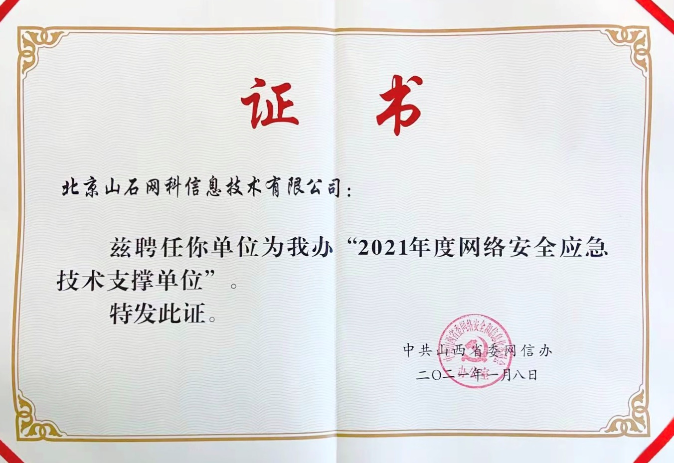 彩神购Vll购当选山西省委网信办“2021年度网络安全应急技术支撑单位”