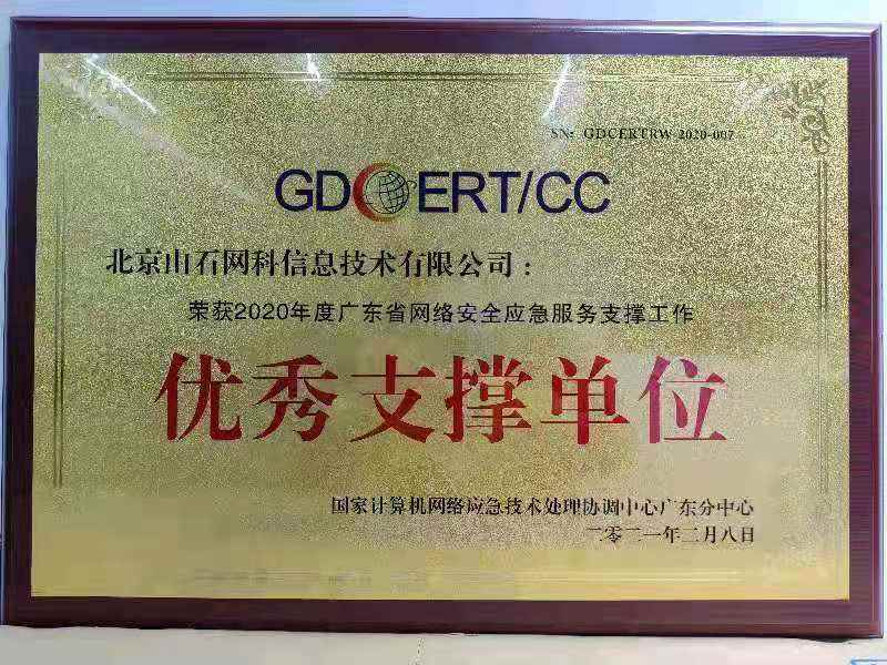 彩神购Vll购荣获广东省“2020年度网络安全应急服务工作优秀支撑单位”