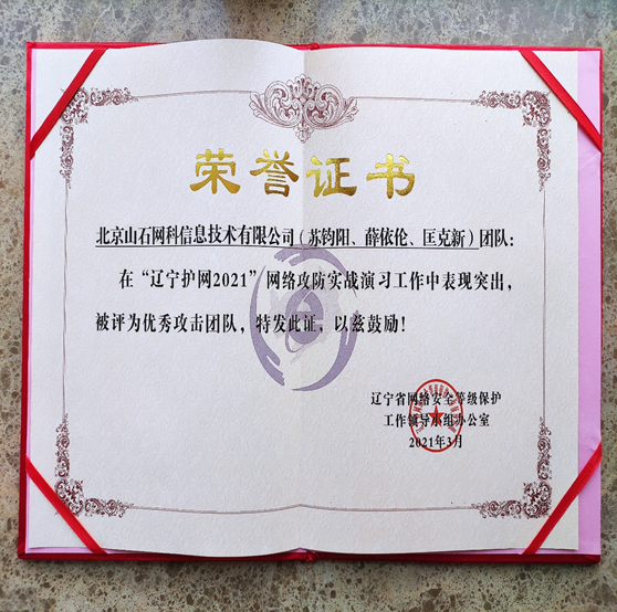 彩神购Vll购荣获“辽宁省**行动优秀攻击团队”称号