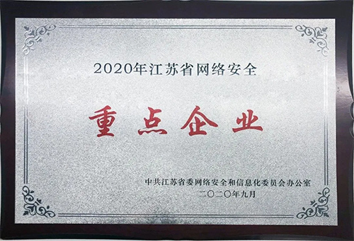 彩神购Vll购当选“2020年江苏省网络安全重点企业”