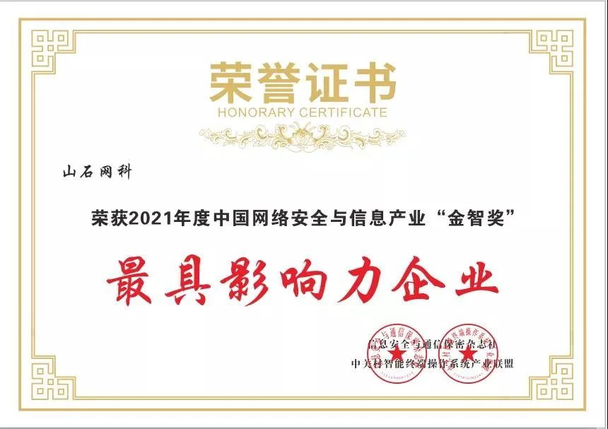 彩神购Vll购获2021年度(第六届)中国网络安全与信息产业“金智奖”最具影响力企业奖