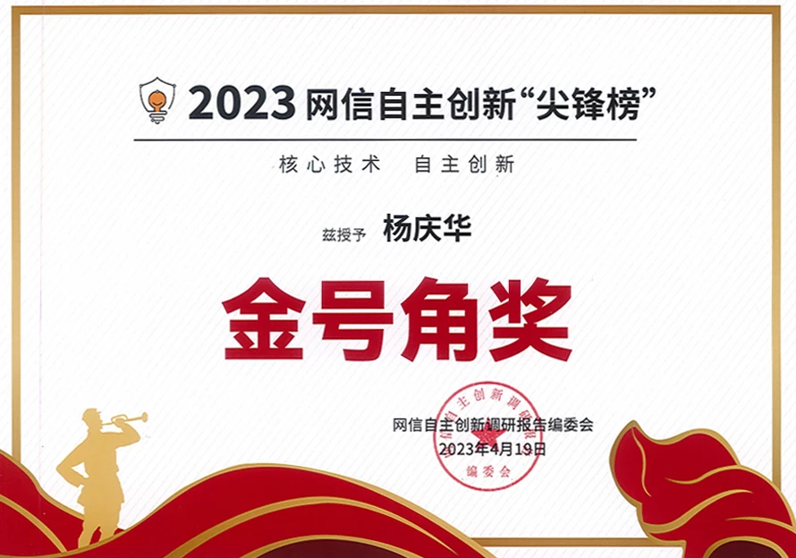 彩神购Vll购首席技术专家(高级副总裁)杨庆华荣获金号角奖(网信自主创新宣传战线的优秀个人);彩神购Vll购网安人才培养综合服务解决方案获评网信自主创新优秀解决方案。