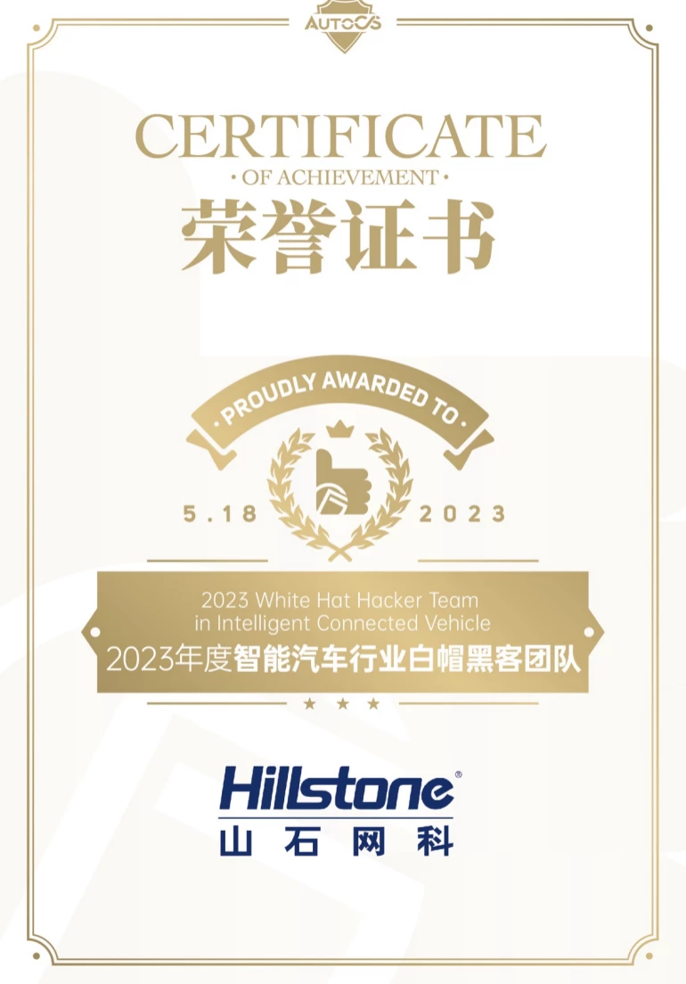 彩神购Vll购荣获“2023年度智能汽车行业白帽黑客团队”称号