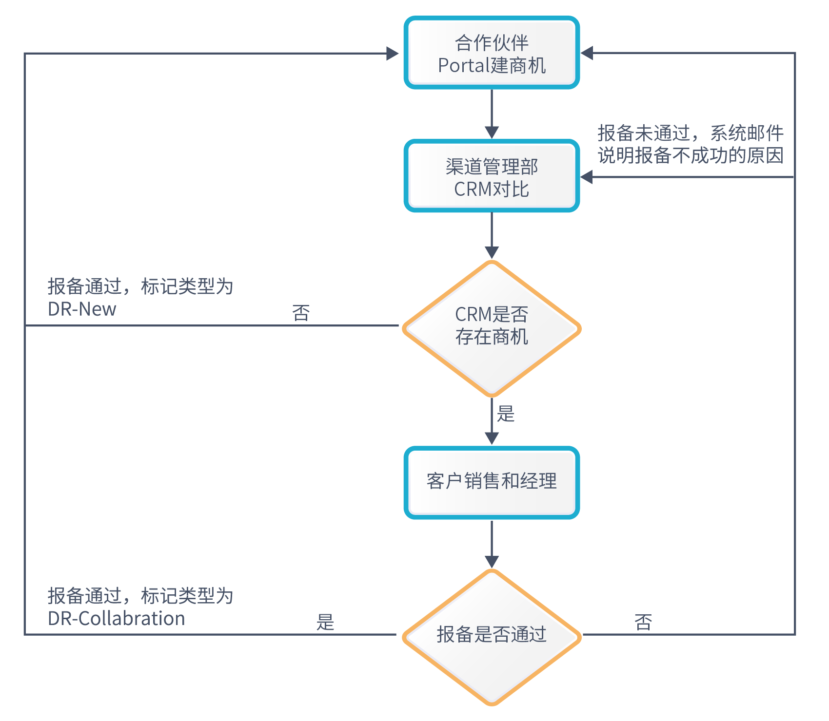 3. 如果报备成功,系统回复邮件,抄送至渠道经理、相关销售人员以及上一级经理