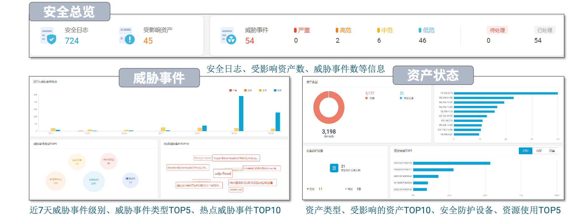 帮助用户及时发现威胁风险,做好资产管理。