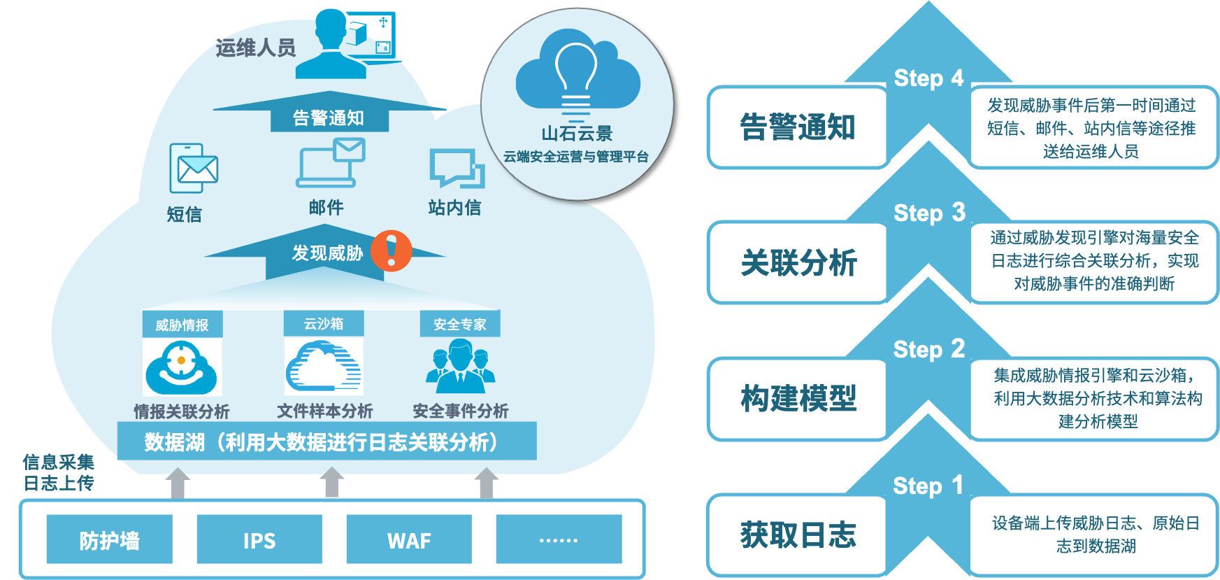 以云景为依托,可为广大中小企业用户提供“安全产品+工具+专家级安全运营”三维结合的安全运营托管服务。